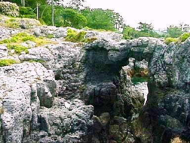 波が岩を穿ち、自然の力でできためがね橋 --- 2003年1月2日(木) --- --- 2003年9月2日(火) --- |
