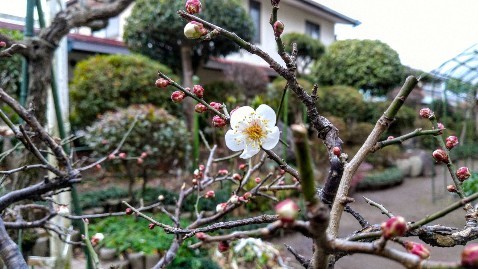 温かかさに誘われて、庭に一輪の梅が咲きました♪ ----- 日置市伊集院町 ----- |