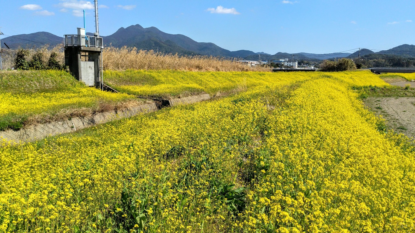 昼過ぎ、気温は20℃まで上がり、車のエアコンは冷房に切り替わる。。 金峰山を望む用水路の土手は菜の花に埋め尽くされていた♪♪ ----- 南さつま市金峰町 ----- |